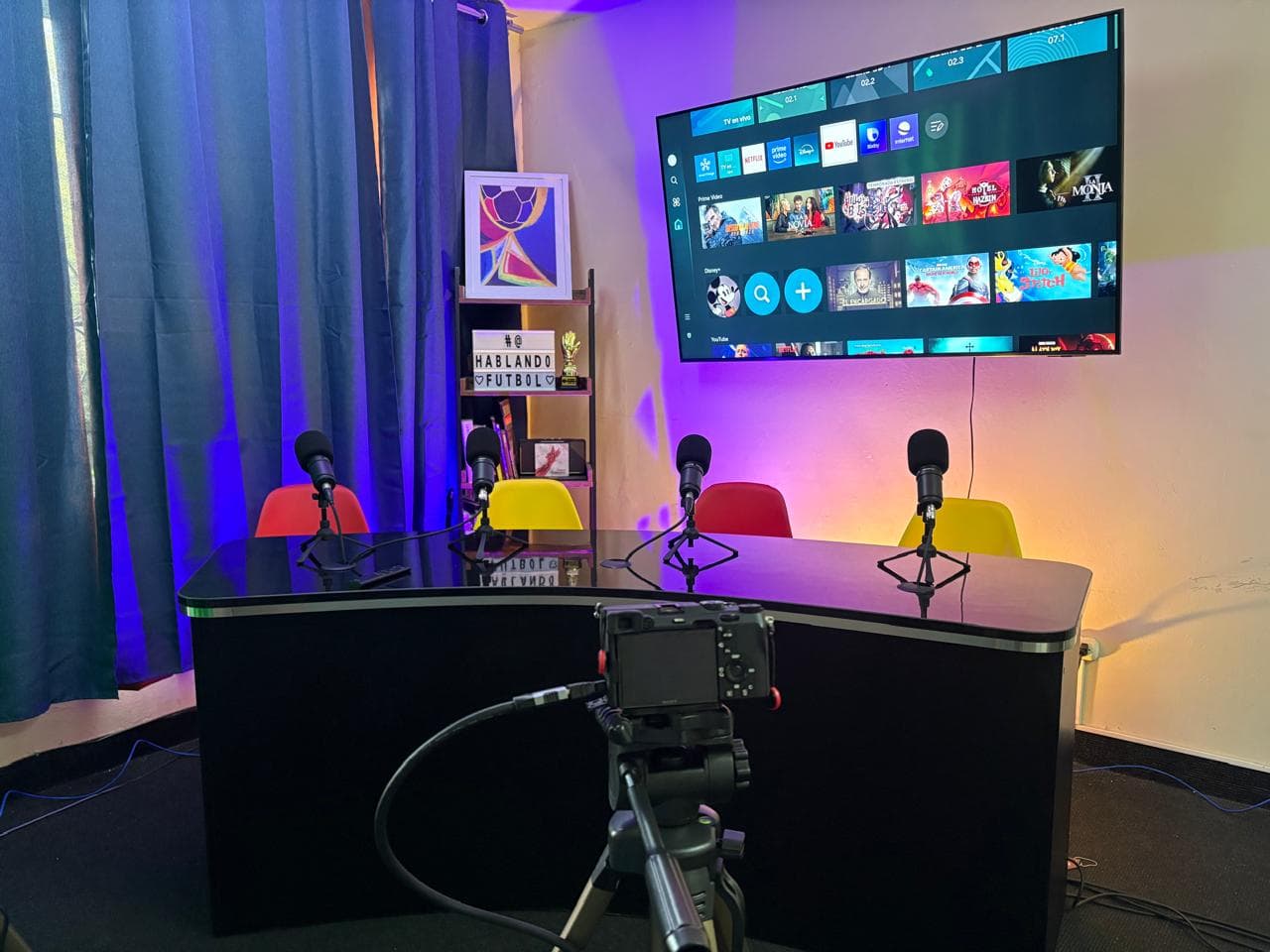 Reserva de estudio profesional, gestion de contenido y publicacion con un clic en YouTube, TikTok, Instagram, Spotify y Apple Podcasts.